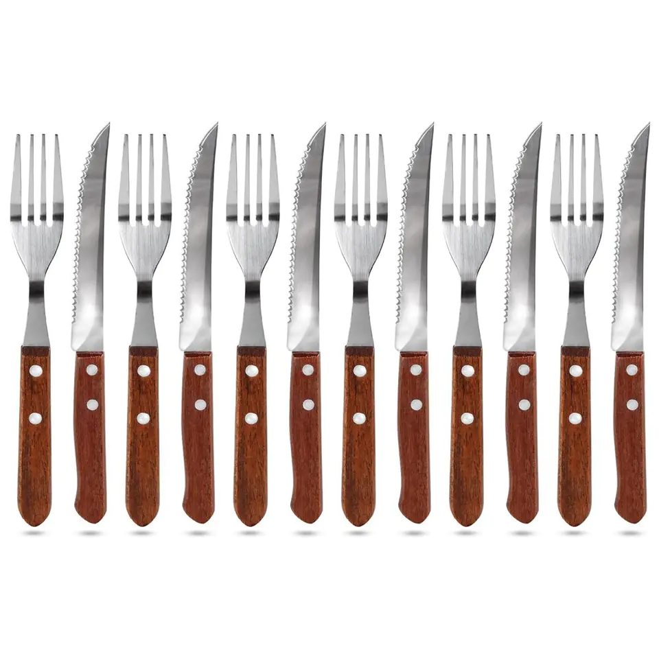 - Zestaw sztućców do steków i pizzy (12 el.), w zestawie nóż z ząbkami (6szt.) oraz widelec (6 szt.).
