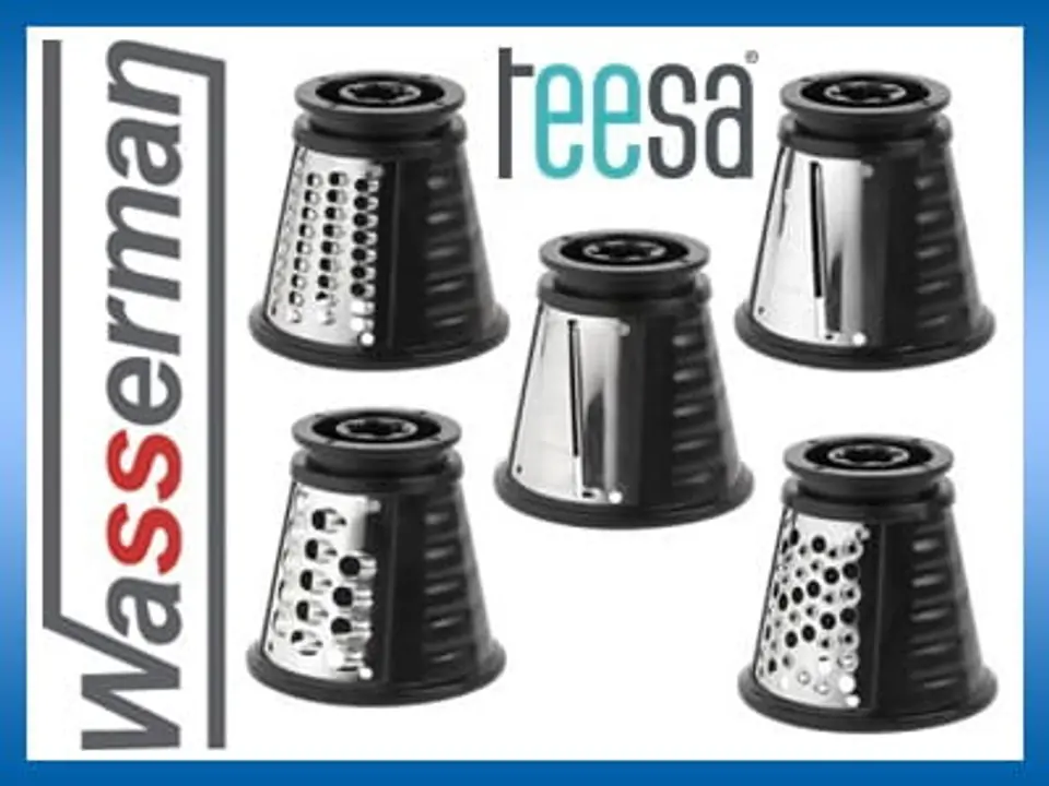 Komplet pięciu tarek do szatkownicy marki Tessa, model TSA3025. Produkt nowy.