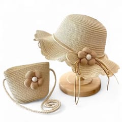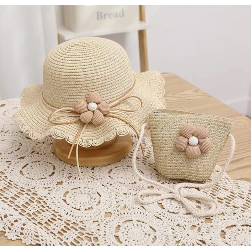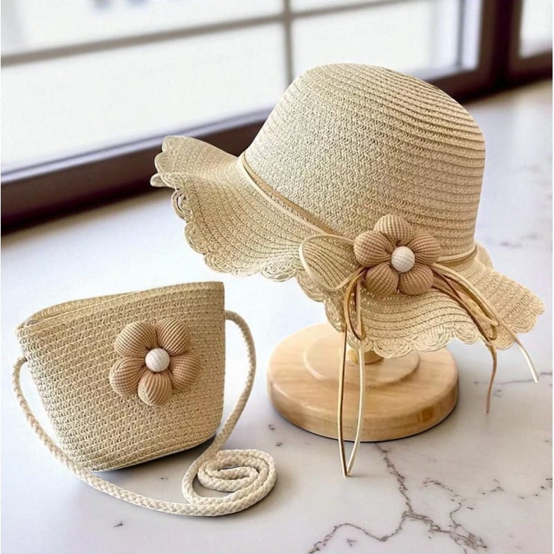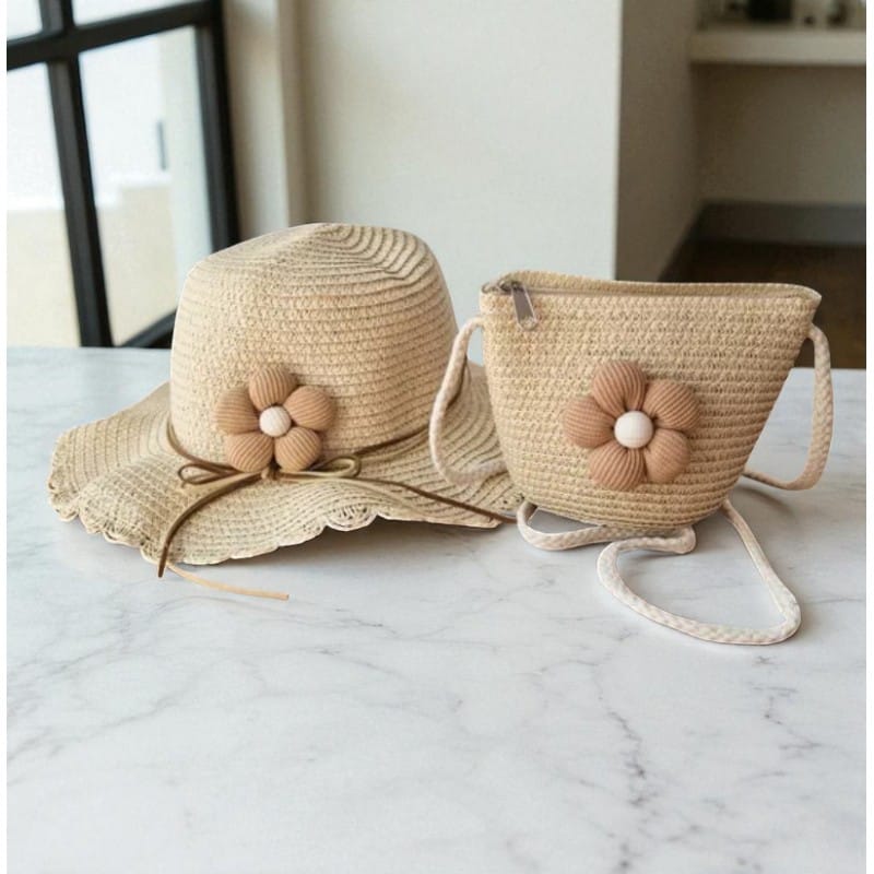 ZESTAW torebka i kapelusz 52cm dla dziewczynki słomiane KWIAT CZ55