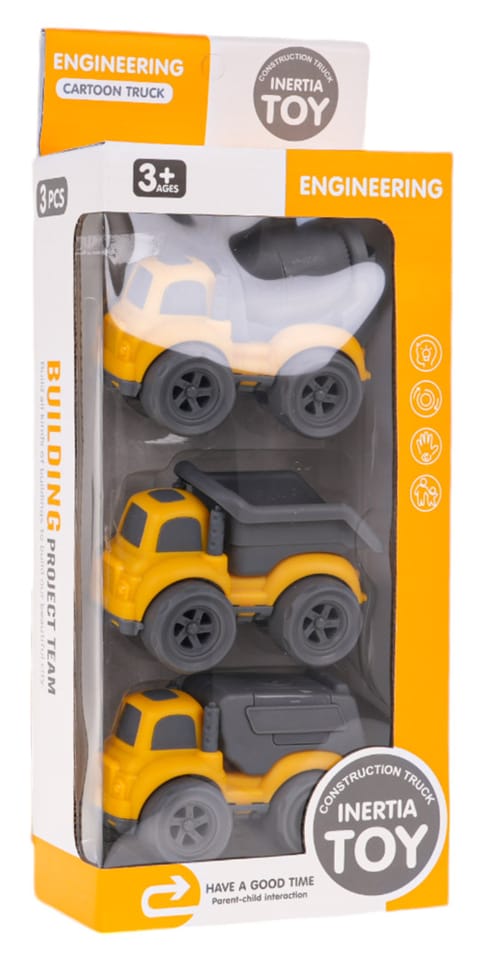| Zestaw 3 pojazdów budowlanych dla dzieci od 3-go roku życia. Zestaw wykonany został z najwyższej jakości plastiku. Niewielki gabaryt pojazdów pozwala je zabrać wszędzie ze sobą. W zestawie znajduje się betoniarka, wywrotka oraz śmieciarka. Funkcje zestawu:- przeznaczony dla dzieci od 3-go roku życia,- wykonany z najwyższej jakości plastiku,- ruchome elementy:* betoniarka z ruchomą gruszką,* wywrotka z ruchomą przyczepą,* śmieciarka z otwieraną tylną klapą. | |