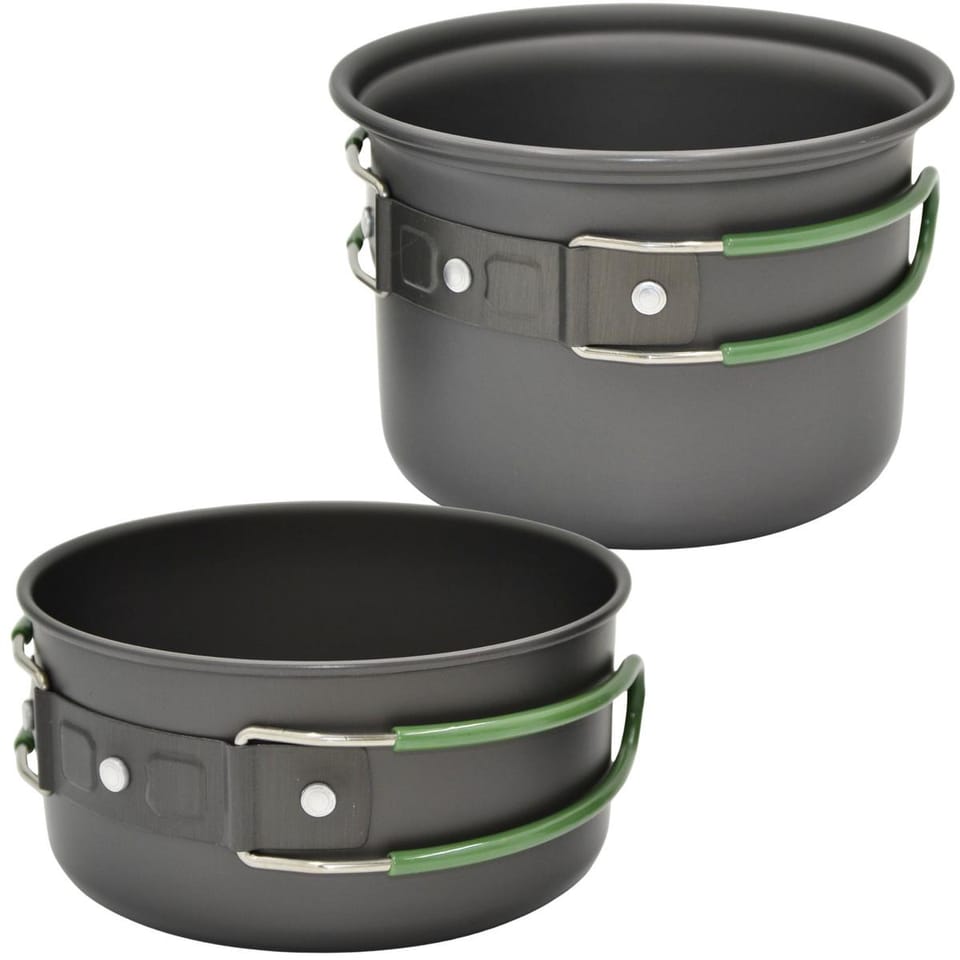 Zestaw 2 garnków - dwa różne rozmiary pozwalają przygotować zarówno główne dania, jak i dodatki. Zestaw sprawdzi się podczas solo wypraw, jak i biwaków we dwoje.