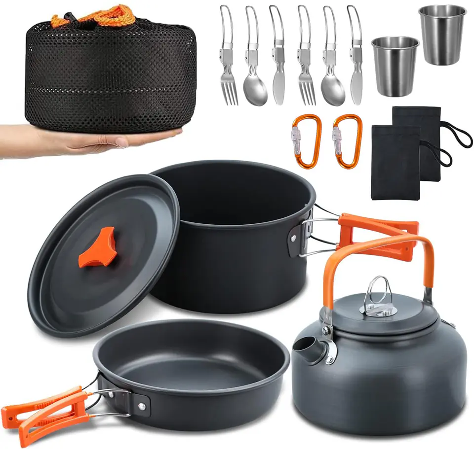 Zestaw turystyczny NOMAD komplet czajnik garnek patelniaPrzeznaczenie: podróż, kemping, wakacje Praktyczny, solidnie wykonany i wyjątkowo lekkiJeśli jesteś miłośnikiem outdooru i uwielbiasz gotować w trakcie swoich wypraw, to zestaw garnków turystycznych Nomad to idealny wybór dla Ciebie! Ten lekki zestaw, składający się z patelni, czajnika, garnka, sztućców i kubeczków jest idealny dla każdego turysty, który szuka praktycznych i funkcjonalnych rozwiązań. Naczynia zostały wykonane z wysokiej jakości anodowanego aluminium, co gwarantuje ich trwałość i odporność na korozję. Dodatkowo posiadają antyoparzeniowe i antypoślizgowe rączki. Zestaw naczyń turystycznych Nomad jest lekki i kompaktowy, całość waży jedynie 800 g dzięki czemu komplet nie zajmie wiele miejsca w Twoim plecaku. W skład zestawu wchodzi patelnia, czajnik oraz garnek z pokrywką, dzięki czemu masz wszystko to, co potrzebujesz, by przygotować pyszne i sycące posiłki w trakcie swoich wędrówek. Patelnia z nieprzywieralną powłoką pozwoli Ci bez problemu przygotować jajka, naleśniki czy mięso, a garnek posłuży do gotowania makaronu, ryżu czy zupy. Czajnik z kolei umożliwi Ci zaparzenie aromatycznej kawy czy herbaty, co pozwoli Ci na krótki odpoczynek i zregenerowanie sił. W komplecie dodatkowo składane sztućce: 2 łyżki, 2 widelce, 2 noże. Całość została zapakowana w praktyczny siatkowany worek, który ułatwia transport oraz przechowywanie zestawu. Do zestawu dołączone są również dwa karabińczyki, dzięki którym np przytroczysz zestaw do plecaka. Jeśli więc szukasz lekkiego, funkcjonalnego i praktycznego zestawu garnków turystycznych, który zawsze będzie Ci towarzyszył w trakcie Twoich wypraw, to Zestaw Nomad spełni Twoje oczekiwania! W zestawiegarnek z pokrywkączajnik z pokrywkąpatelniasztućce: noże - 2 szt, widelce - 2szt, łyżki - 2 sztkubeczki: 2 sztkarabińczyki: 2 sztworek siatkowany Zalety zestawu✅Najwyższa jakość materiałów✅Lekki - tylko 800 g✅Praktyczny i funkcjonalny✅Bardzo bogaty zestaw✅W komplecie sztućce i kubeczki✅Dwa karabińczyki do przytraczania✅Kompaktowe wymiary✅Mały po spakowaniu✅Solidny i wytrzymały✅Odporny na korozję✅Estetycznie wykonany✅Łatwy do utrzymania w czystości✅Odpowiednia wielkość✅Doskonałe rozwiązanie dla turystów SpecyfikacjaMateriał: aluminium anodowaneMateriał rączek: tworzywo sztuczneZawartość zestawu: Garnek z pokrywką, czajnik z pokrywką, patelnia, 2 kubeczki, siatkowany worek, 2 pokrowce do sztućców, 2 łyżki, 2 widelce, 2 noże, 2 karabińczykiWaga zestawu: 800 gAntyoparzeniowe i antypoślizgowe rączkiSkładane uchwytyWymiar patelni: 18 x 4 cmWymiar czajnika: 8,5 x 14 cmPojemność czajnika: 800 mlWymiary garnka: 9 x 17 cmPojemność garnka: 1,5 litraDługość sztućców: 15 cm (9 cm po złożeniu)Pojemność kubeczków: 65 mlWymiary spakowanego zestawu: wys. 11 cm x śr. 17,5 cmMożliwość użytkowania: na palnikach gazowych, paliwowych, na paliwo stałe, na ognisku Informacje dodatkowePrzedstawione kolory należy traktować poglądowo - mogą odbiegać od rzeczywistych ze względu na różne ustawienia monitorów oraz proces obróbki zdjęć. Rzeczywiste wymiary mogą się różnić od podanych wyżej. Tolerancja błędów może wynosić +/- 5%. Marka:GockowiakKod EAN:5902340329917Ilość elementów w zestawie:18Materiał: aluminium anodyzowaneWaga800 gKolor dominujący:szary, pomarańczowy, czarny Przedstawione kolory należy traktować poglądowo - mogą odbiegać od rzeczywistych ze względu na różne ustawienia monitorów oraz proces obróbki zdjęć. Rzeczywiste wymiary mogą się różnić od podanych wyżej. Tolerancja błędów może wynosić +/- 5%.
