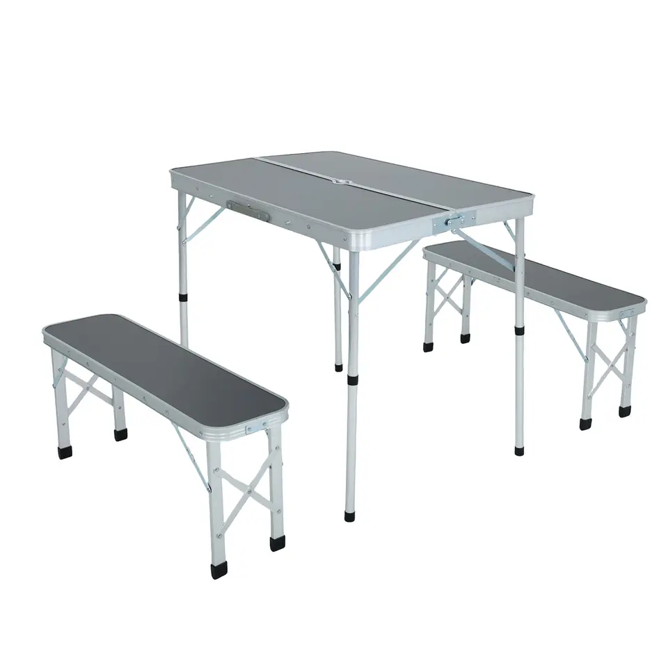 Stół kempingowy ROI został zaprojektowany z myślą o komforcie i funkcjonalności podczas spotkań na wolnym powietrzu. Wykonany z wysokiej jakości aluminium i MDF, zapewnia solidność i niezawodność, niezależnie od warunków atmosferycznych. Dzięki swojej lekkości oraz możliwości złożenia, idealnie sprawdza się podczas pikników, grillowania w ogrodzie czy wypraw kempingowych. Zarówno stół, jak i dwie ławki, posiadają wystarczającą przestrzeń, by wygodnie pomieścić 4 osoby. Certyfikat zgodności z normą EN 581 gwarantuje wysoką jakość i bezpieczeństwo użytkowania na zewnątrz. Pozwól sobie na relaks i wygodę na świeżym powietrzu z funkcjonalnym zestawem turystycznym ROI w eleganckim kolorze szarym.