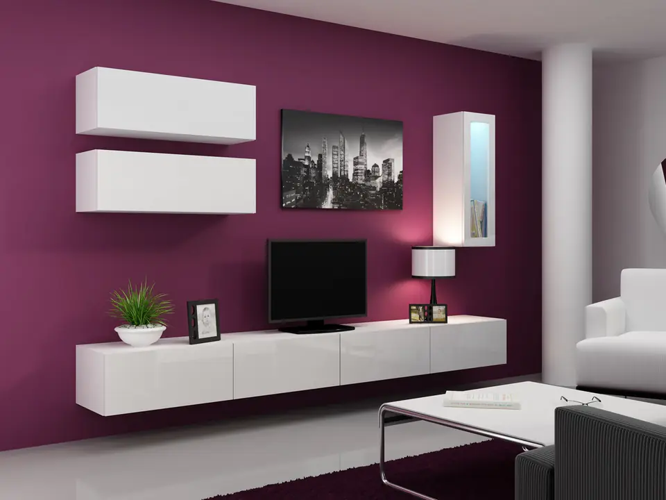 | Dodatkowe informacje: | Istnieje możliwość dokupienia oświetlenia szafkowego LED., Płyta wiórowa laminowana wyróżnia się odpornością na naprężenia mechaniczne i ekstremalne temperatury, Zdjęcia przedstawiają przykładową aranżację zestawu., Meble do samodzielnego montażu, Bezuchwytowe fronty, Szafka RTV VIGO '140': 30/140/40, podwieszana, dwie klapy otwierane do dołu, wewnątrz dwie komory., Witryna VIGO '90' szkło: 35/90/32, front w wysokim połysku przeszklony, możliwość wieszania w pionie lub poziomie., Opcjonalne oświetlenie LED półek (za dopłatą), Dostępne kolory podświetlenia: biały zimny, czerwony, niebieski, zielony, Podany wymiar całkowity zestawu nie uwzględnia widocznych na zdjęciach przerw między bryłami. Zalecana odległość min. 10 cm., Witryna VIGO '90' pełna: 35/90/32, front w wysokim połysku, możliwość wieszania w pionie lub poziomie., Szafka podwieszana |