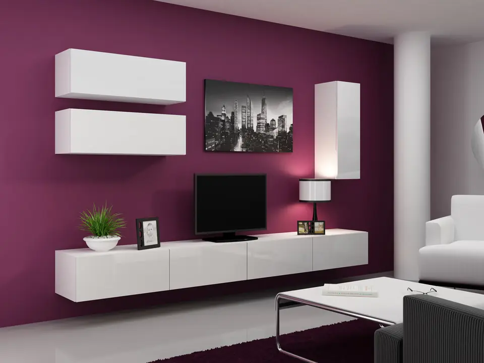 | Dodatkowe informacje: | Istnieje możliwość dokupienia oświetlenia szafkowego LED., Podany wymiar całkowity zestawu nie uwzględnia widocznych na zdjęciach przerw między bryłami. Zalecana odległość min. 10 cm., Witryna VIGO '90' pełna: 35/90/32, front w wysokim połysku, możliwość wieszania w pionie lub poziomie., Szafka RTV VIGO '140': 30/140/40, podwieszana, dwie klapy otwierane do dołu, wewnątrz dwie komory., Zdjęcia przedstawiają przykładową aranżację zestawu. |