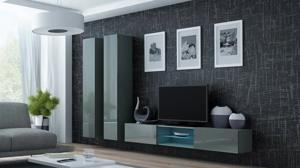 | Dodatkowe informacje: | Dostępne kolory podświetlenia: biały zimny, czerwony, niebieski, zielony, Podany wymiar całkowity zestawu nie uwzględnia widocznych na zdjęciach przerw między bryłami. Zalecana odległość min. 10 cm., Płyta wiórowa laminowana wyróżnia się odpornością na naprężenia mechaniczne i ekstremalne temperatury, Szafka RTV VIGO GLASS: 30/180/40, z lewej i prawej strony klapy otwierane do dołu, fronty w wysokim połysku, komora otwarta z półką szklaną, szafka RTV podwieszana., Witryna VIGO '180' pełna: 180/40/30, wewnątrz cztery półki zwykłe., Zdjęcia przedstawiają przykładową aranżację zestawu., Meble do samodzielnego montażu, Istnieje możliwość dokupienia oświetlenia szafkowego LED., Szafka podwieszana, Bezuchwytowe fronty, Opcjonalne oświetlenie LED półek (za dopłatą) |