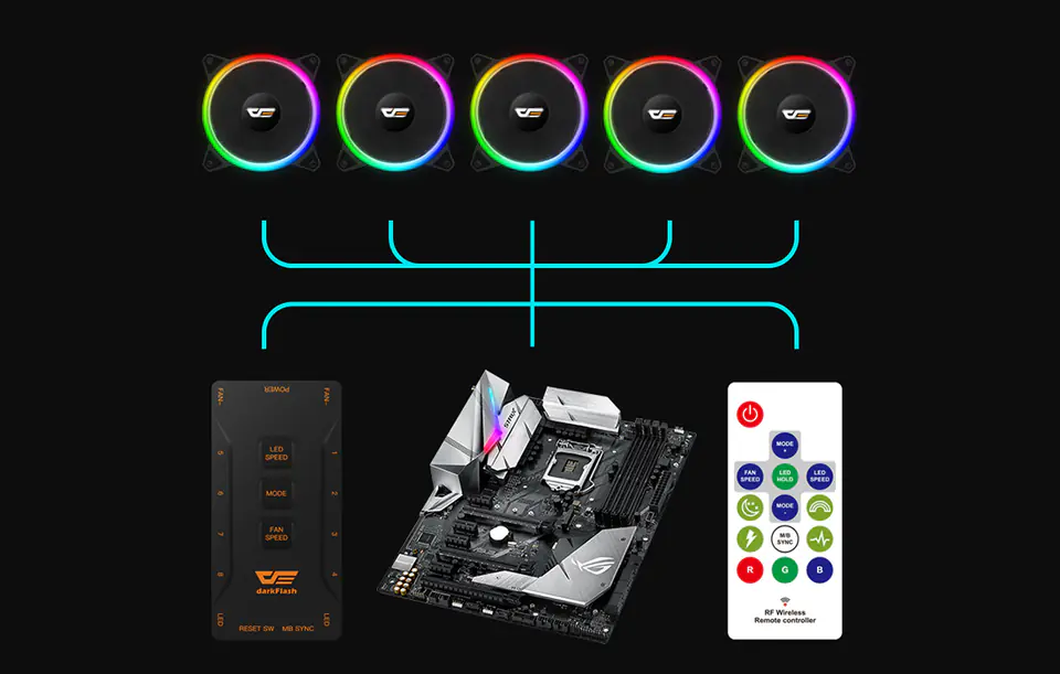 Zestaw wentylatorów z podświetleniem ARGB 5w1 Darkflash DR12 Pro
