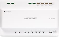 Dwuprzewodowy zestaw wideodomofonowy HIKVISION z 7" dotykowym monitorem oraz kontrolerem wyposażonym w 4 magistrale 2-przewodoweWideodomofon jest montowany natynkowo