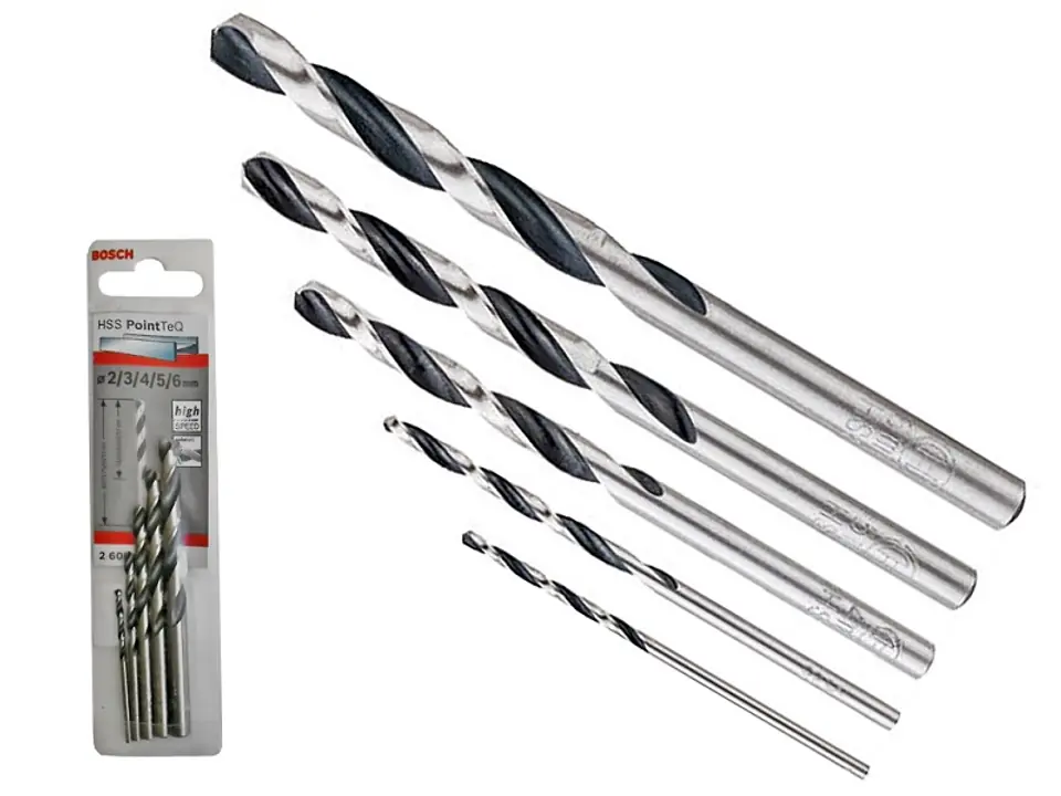 Zestaw wierteł krętych HSS PointTeQ, 5 szt. Średnice (mm): 2 3 4 5 6 Długości robocze (mm): 24 33 43 52 57