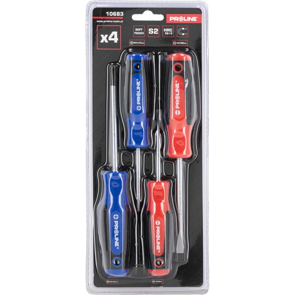ZESTAW WKRĘTAKÓW 4 SZT., SOFT-TOUCH, S2, MAGNES, PROLINE