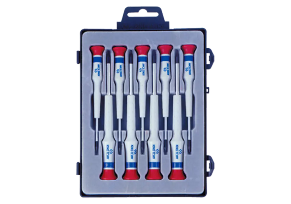 Zestaw płaskich wkrętaków precyzyjnych King Tony w plastikowym pudełku z uchwytem do powieszenia. Zestaw dla majsterkowiczów, do prac precyzyjnych. W zestawie znajduje się 9 śrubokrętów płaskich w rozmiarach: 0.8x40, 1.0x40, 1.5x40, 1.8x40, 2.0x40, 2.5x40, 3.0x40, 3.5x40, 4.0x40 Karta produktu - 32209MR