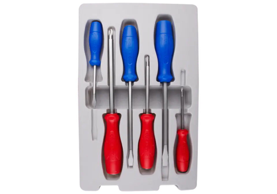 W zestawie wkrętaki ślusarskie:- krzyżakowe 1481: PH1x75, PH2x100, PH3x150- płaskie 1482: 5,5x5, 6,5x150, 8x150 Karta produktu - 36206MR
