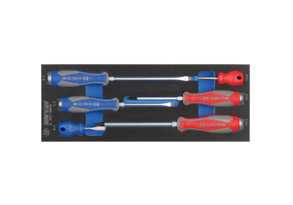 ZESTAW WKRĘTAKÓW ŚLUSARSKICH 6 cz. KRZYŻAK + PŁASKIE, WKŁAD Z PIANKI EVA DO WÓZKA King Tony