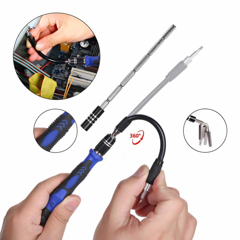 - - Elastyczna nasadka przedłużająca na śrubokręt: Ułatwia dostęp do trudno dostępnych miejsc.