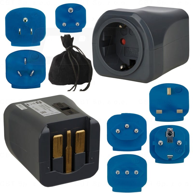 - Adapter podróżny do podłączania urządzeń elektrycznych z 2-biegunowym systemem wtykowym