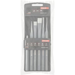 - Zawartość zestawu: - Punktak 115 mm x 8 mm - Dobijak 140 mm x 2 mm - Przecinaki: 140 mm x 10 mm, 150 mm x 12 mm - Wybijaki: 150 mm x 6 mm, 150 mm x 3 mm