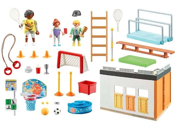 Dzięki licznym akcesoriom i obręczy do koszykówki w sali gimnastycznej można uprawiać liczne dyscypliny sportowe, a po lekcjach wychowania fizycznego sprzęt można ponownie odłożyć w wyznaczone miejsca.