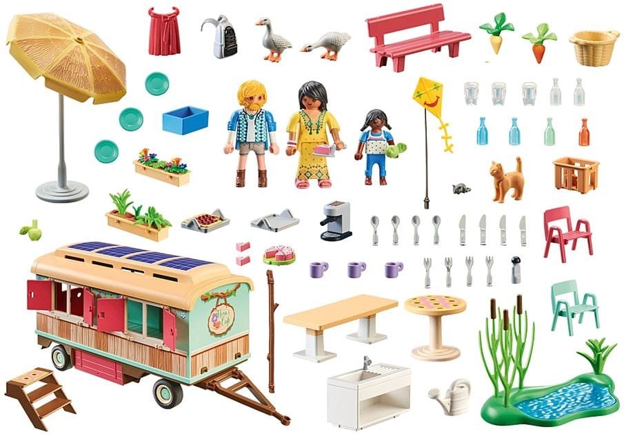 Idealny prezent na każdą okazję, który zachęca dzieci do kreatywności i pomaga im rozwijać cenne umiejętności. Zestaw zawiera trzy figurki PLAYMOBIL, dwie gęsi, wagon, miejsce do siedzenia z dwoma krzesłami i stołem, skrzynki na kwiaty i wiele innych dodatków. Wnętrze wagonu można dowolnie udekorować za pomocą dołączonych naklejek.