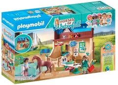 - Bogato wyposażony zestaw zabawek z końmi PLAYMOBIL weterynarzem Philem, koniem Zorą, aparatem rentgenowskim, narzędziami chirurgicznymi, skrzynką treningową i innym sprzętem medycznym do leczenia zwierząt.