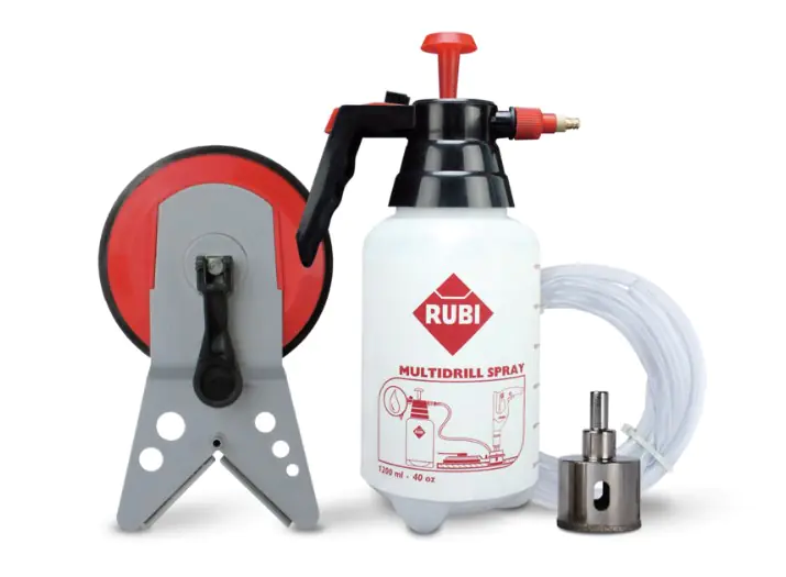 Dzięki funkcjonalnej konstrukcji zbiorniczka wodnego z zaworkiem regulującym wypływ wody, prowadnica EASYGRES umożliwia wykonywanie otworów zarówno w pionie, jak i w poziomie. Przylepce umożliwiają łatwe mocowanie prowadnicy na dowolnej powierzchni.