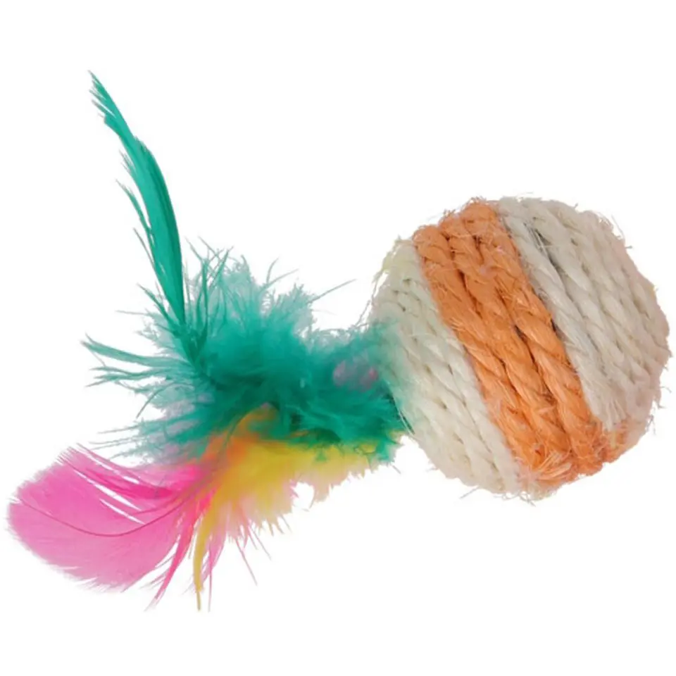 - w zestawie 6 szt. różnych zabawekpiłeczki z piórkami i dzwoneczkiem, piłka sizalowa, czerwona rybka na sznureczki gwarantują dobrą zabawękolor przyciągają wzrok, a otwory i pleciona struktura umożliwiają zaczepienie pazurówidealne dla każdego kota