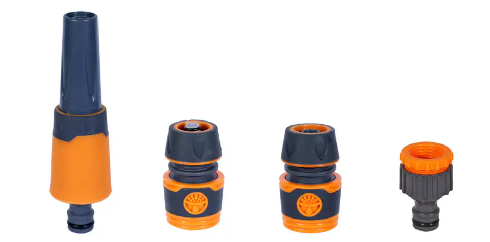 -w zestawie: zraszacz prosty regulowany, przyłącz z gwintem wewnętrznym, szybkozłącze przelotowe, szybkozłącze z funkcją stop