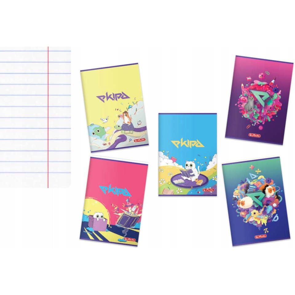 Zestaw Zeszyt A5 60k linia 70g EKIPA 5 sztuk) + Farby plakatowe 8 kolorów HERLIT