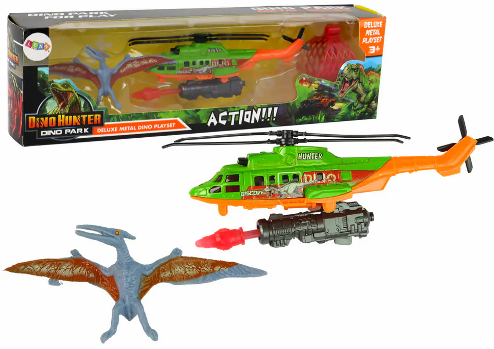 Nasz zestaw to idealny prezent dla małych odkrywców! Zawiera realistycznie wyglądającego dinozaura i zielony helikoptera z rakietą, która zapewnia ekscytującą zabawę.