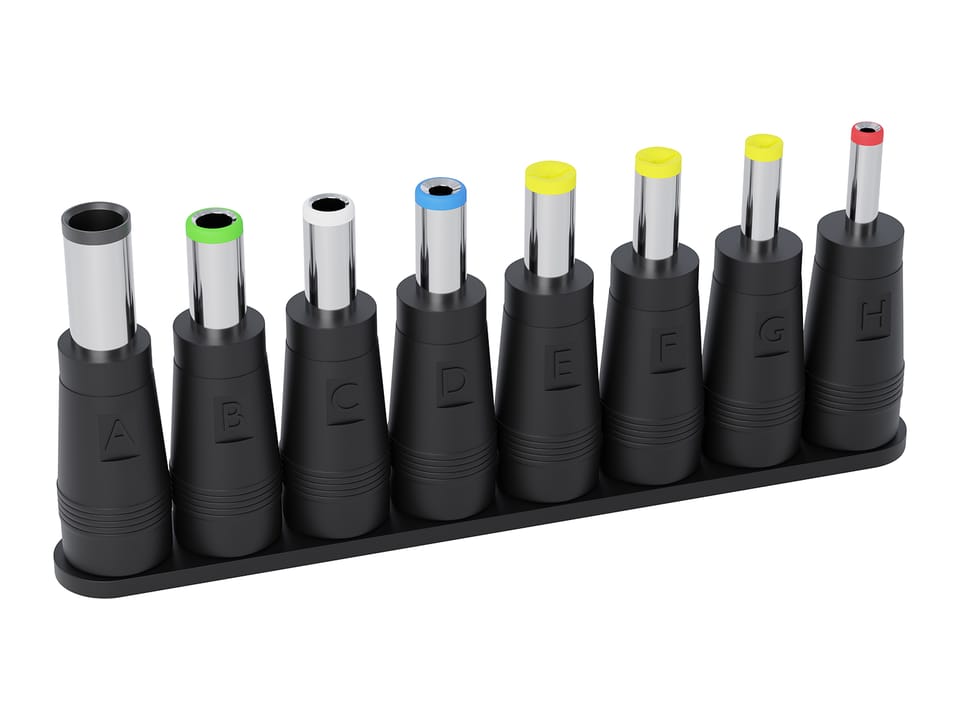 Zestaw złączy DC mocowanych w uniwersalnym gnieździe wraz z przewodem długości 18cmW skład zestawu wchodzą wtyki o rozmiarach:A - 6,0*4.4 mm + pin B - 6.1*3.0 mmC - 5.5*2.5 mmD - 5.5*2.1 mmE - 5.5*1.7 mmF - 4.7*1.7 mmG - 4.0*1.7 mmH - 3.5*1.3 mm