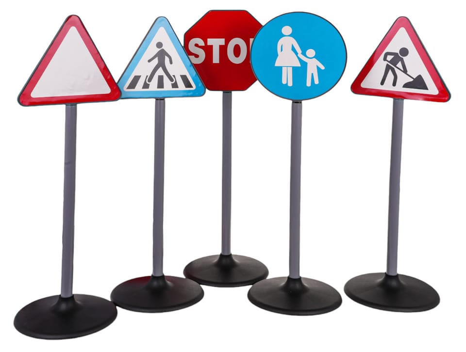 | - 5 znaków:• znak stop,• znak przejście dla pieszych,• znak roboty drogowe,• znak droga dla pieszych,• trójkąt ostrzegawczy,- naklejki ze znakami. |