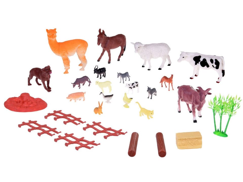 Zestaw "Farma ze zwierzętami" to idealny prezent dla każdego dziecka lubiącego bawić się w gospodarza, farmę, czy gospodarstwo!Zestaw zawiera:Figurki zwierząt: krowy, psy, osiołki, koń, owca, jagnię, kozły, alpaka, świnia, bawół, kot, królik, kaczka, kuraDodatkowe akcesoria: bela siana, dwie kłody, płot, krzak, owalny plac ziemi.Zabawka "Farma ze zwierzętami" to:- Doskonały sposób na rozwijanie wyobraźni i kreatywności dziecka.- Możliwość tworzenia własnych historii i scenek z życia na farmie.- Nauka na temat zwierząt gospodarskich i ich otoczenia.- Doskonała zabawa dla całej rodziny.Dodatkowe informacje:- Zabawka jest łatwa do czyszczenia.- Można ją używać zarówno w domu, jak i na zewnątrz.- Zabawka jest świetną propozycją do rozbudowywania własnego gospodarstwa.Materiał: plastikPrzykładowy wymiar:- kozioł 8 x 12 x 3,5 cm- świnka 5 x 2,5 x 1 cm