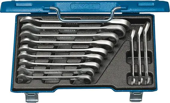 Zestaw kluczy płaskich z pierścieniowymi grzechotkami przełączanymi