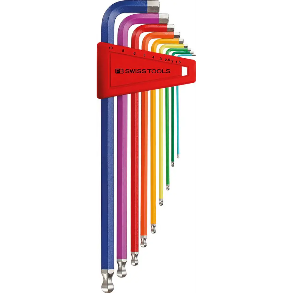 Zestaw kluczy trzpieniowych, kątowych z końcówką kulistą, długich, Rainbow