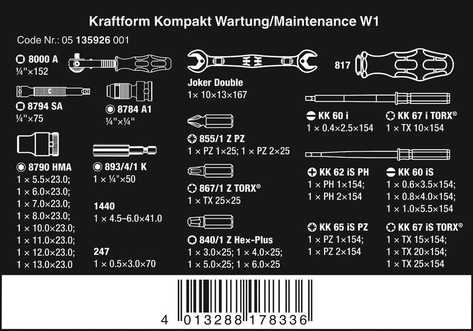 Zest.narzedzi do konserwacji W1,35-czesciowy Wera