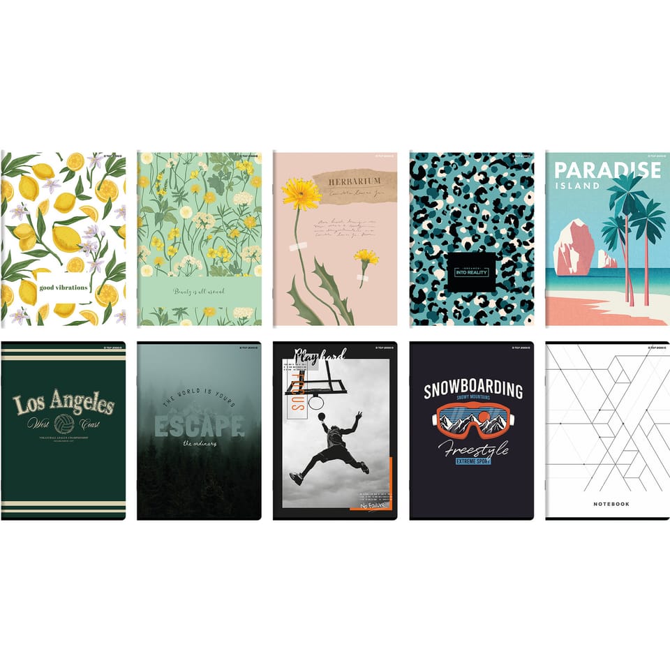 Kolekcja Top 2000 została stworzona po to, aby zapewnić klientowi największy wybór różnorodnych okładek w atrakcyjnej cenie. Same podstawowe formaty i liniatury, uniwersalne grafiki trafiające w obecne trendy oraz style, które bez trudu wybierze uczennica i uczeń każdej klasy. Zastosowany papier jest nieco cieńszy niż w pozostałych produktach marki Top 2000, jednak produkty nie tracą przez to na jakości. Stają się lżejsze, poręczniejsze i odpowiadają preferencjom innych grup użytkowników. Kolekcja Basic to najlepszy wybór dla każdego, kto ceni sobie jakość, styl, funkcjonalność i jednocześnie poszukuje produktu na niższym poziomie cenowym.Cechy główne