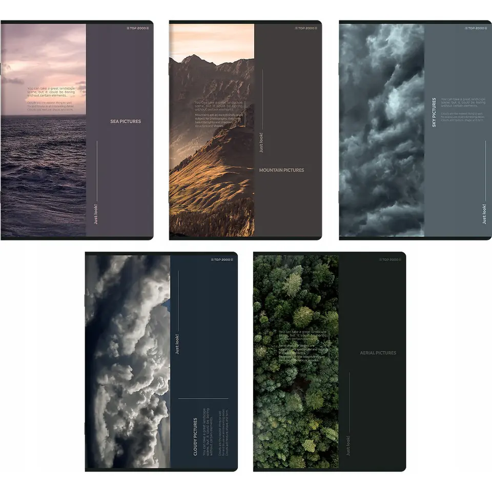 Okladki pokryte są matową folią , która nadaje im dodatkowej elegancji a wybiórczy blyszczący lakier wnosi powiew nowoczesności. To kolekcja dla wszystkich milośników natury i minimalistycznych rozwiązan.