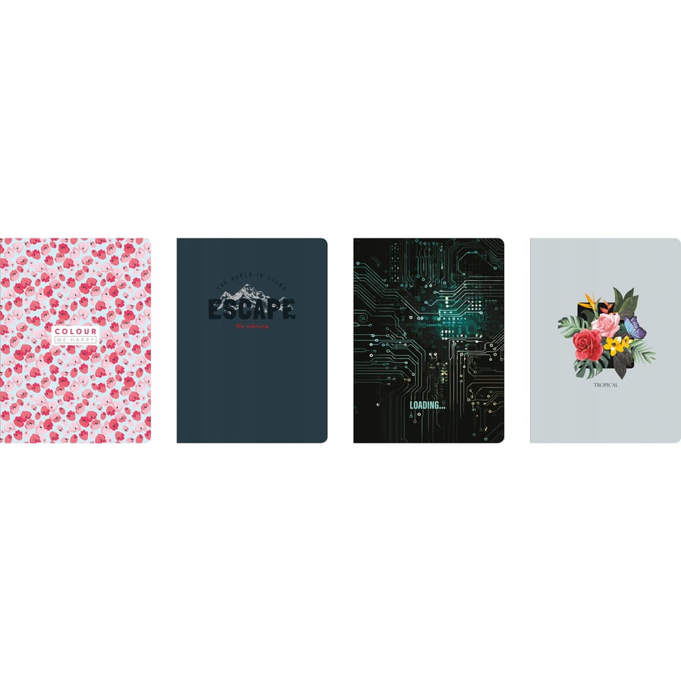 - zeszyt z miękką okładką, lakier UV