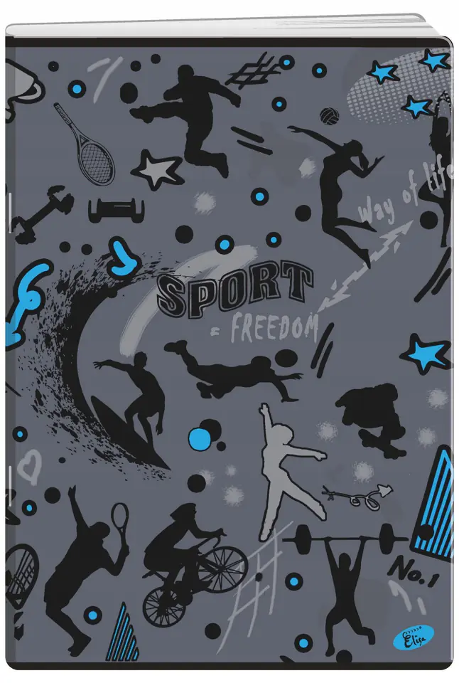 - Zeszyt w miekkiej oprawie w formacie A5 zawiera 80 kartek w linie