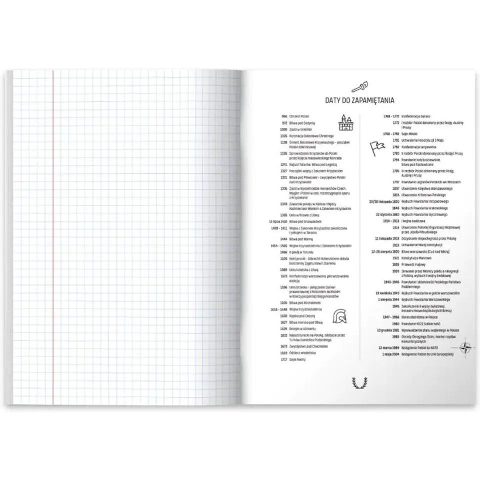 - Liniatura: niebieska kratka + czerwony margines