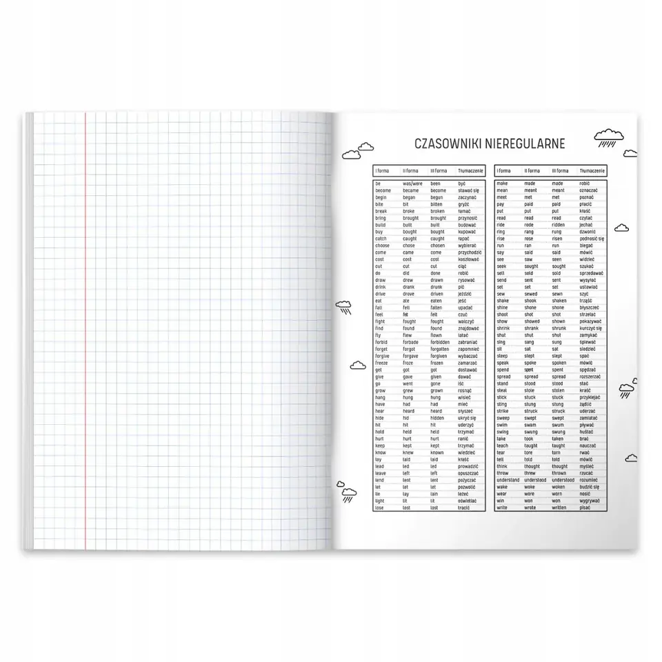 Zeszyt do jezyka angielskiego dla wszystkich uczniów. Okladka wykonana z grubego papieru jest miekka w dotyku dzieki wykonczeniu folią soft touch. Na froncie, oprócz nazwy przedmiotu, znajduje sie zabawny tekst a na okladce wewnetrznej są najwazniejsze zagadnienia z danego przedmiotu! Taka "mala ściąga" dla kazdego!
