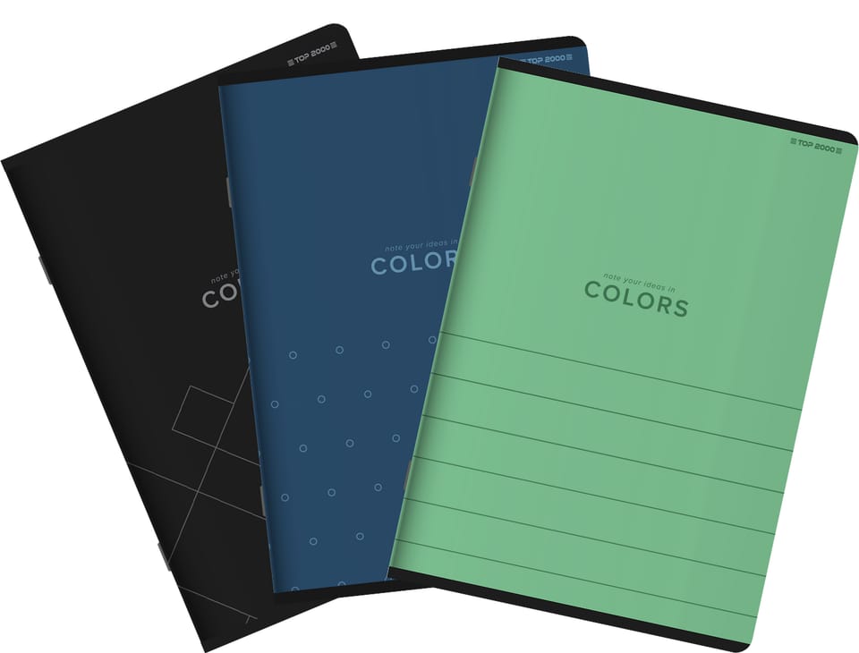* zeszyty COLORS TOP 2000 * minimalistyczne zeszyty z monokolorowymi okładkami * geometryczne grafiki nadają nowoczesnego charakteru * subtelny, biznesowy design dopasuje się do każdego biura * matowe wykończenie dodaje zeszytom klasy i elegancji * miękkie, laminowane, kartonowe, niezawodne okładki oraz wysokiej jakości biały papier doskonale sprawdzą się w każdym biurze i domu * format: A4 * wymiary: 29,4 x 20,7 x 0,9 cm * ilość kartek: 96 * gramatura: 70 g/m2 * liniatura: kratka z marginesem * rodzaj szycia: zszywki * okładki: miks wzorów/kolorów wysyłanych losowo * jednostka sprzedaży 1 sztuka * TOP 2000 jest jedną z najpopularniejszych marek w branży artykułów papierniczych w Polsce - od utworzenia w 1989 roku, celem TOP 2000 zawsze jest dostarczenie papierowych produktów najwyższej jakości skierowanych dla szkoły, biura i domu