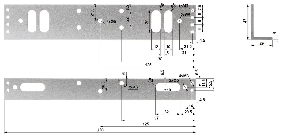 | Wymiary: | 180 x 100 x 50 ... 67 mm - Zetownik250 x 48 x 28 mm - Kątownik |