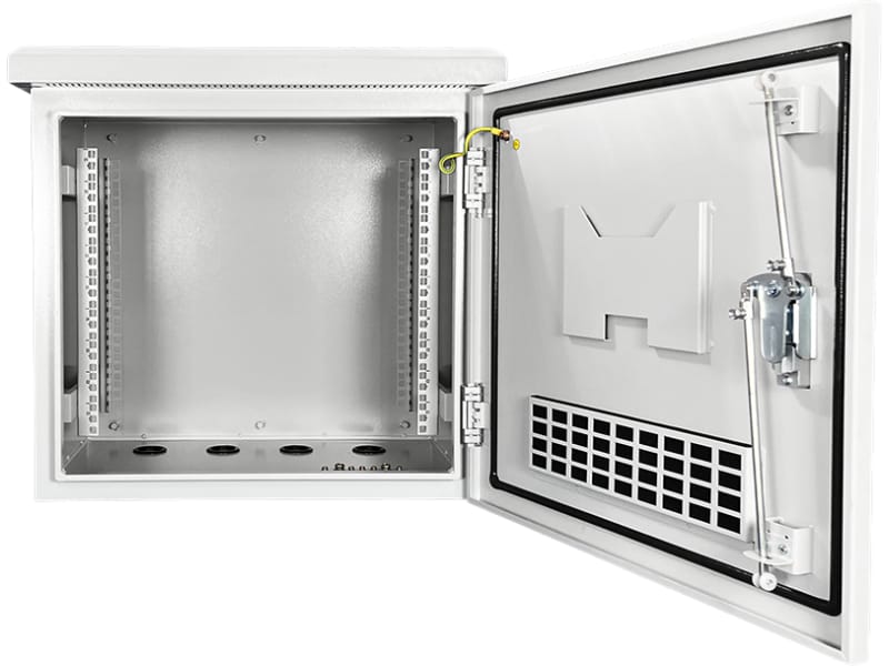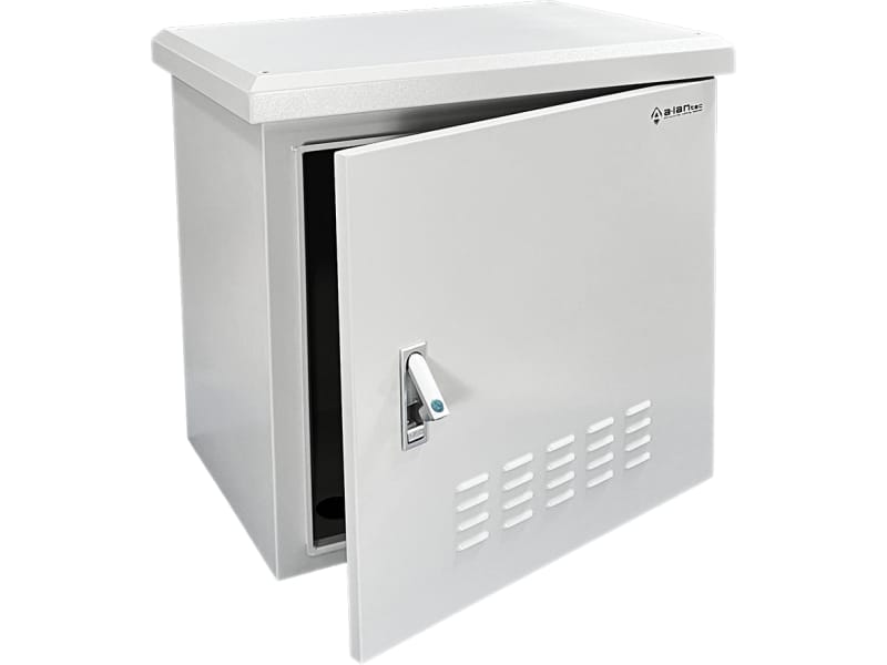 Dla lepszej cyrkulacji powietrza, na drzwiach szafki umieszczono otwory wentylacyjne, wyposażone w wodoodporną osłonę i filtr siatkowy. Szafki wykończone są powłoką proszkową w kolorze szarym RAL7035, odporną na działanie czynników atmosferycznych.