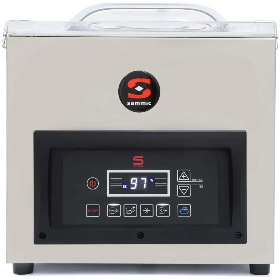 Kod producenta: 1140628Pakowarka próżniowa komorowa serii SE marki Sammic zwiększa czas konserwacji produktów spożywczych surowych lub poddanych obróbce termicznej, bez utraty ich wagi. Zaprojektowana do pakowania surowych lub peklowanych produktów spożywczych, do pakowania produktów poddanych tradycyjnej obróbce termicznej, do pakowania produktów przeznaczonych do późniejszego zamrożenia czy do celów niespożywczych lub „non-food#8221;. Obudowa oraz komora wykonana została ze stali nierdzewnej. Pokrywa z przezroczystego poliwęglanu o wysokiej trwałości. Model wyposażony w pompę BUSCH oraz w bezprzewodową listwę zgrzewającą ułatwiającą czyszczenie. Listwa zgrzewająca wyposażona w zakrzywione grzałki umożliwiająca usunięcie pozostałości produktu i gwarantująca szczelność zgrzewu. Zgrzewarka wyposażona w specjalny czujnik kontrolujący parametry próżni. Przycisk "pauza" do marynowania produktów spożywczych. Program "odsysania etapami" przeznaczony jest do produktów o delikatnej strukturze. Układ bezpieczeństwa z zabezpieczeniem maksymalnego czasu działania lub błędu próżni. Program suszenia pompy, pozwalający na przedłużenie okresu użyteczności. Wizualny wskaźnik poziomu oleju w pompie. Licznik godzin pracy wskazujący na konieczność wymiany oleju. Model homologowany przez NSF - gwarancja bezpieczeństwa i higieny.Cechy produktu: