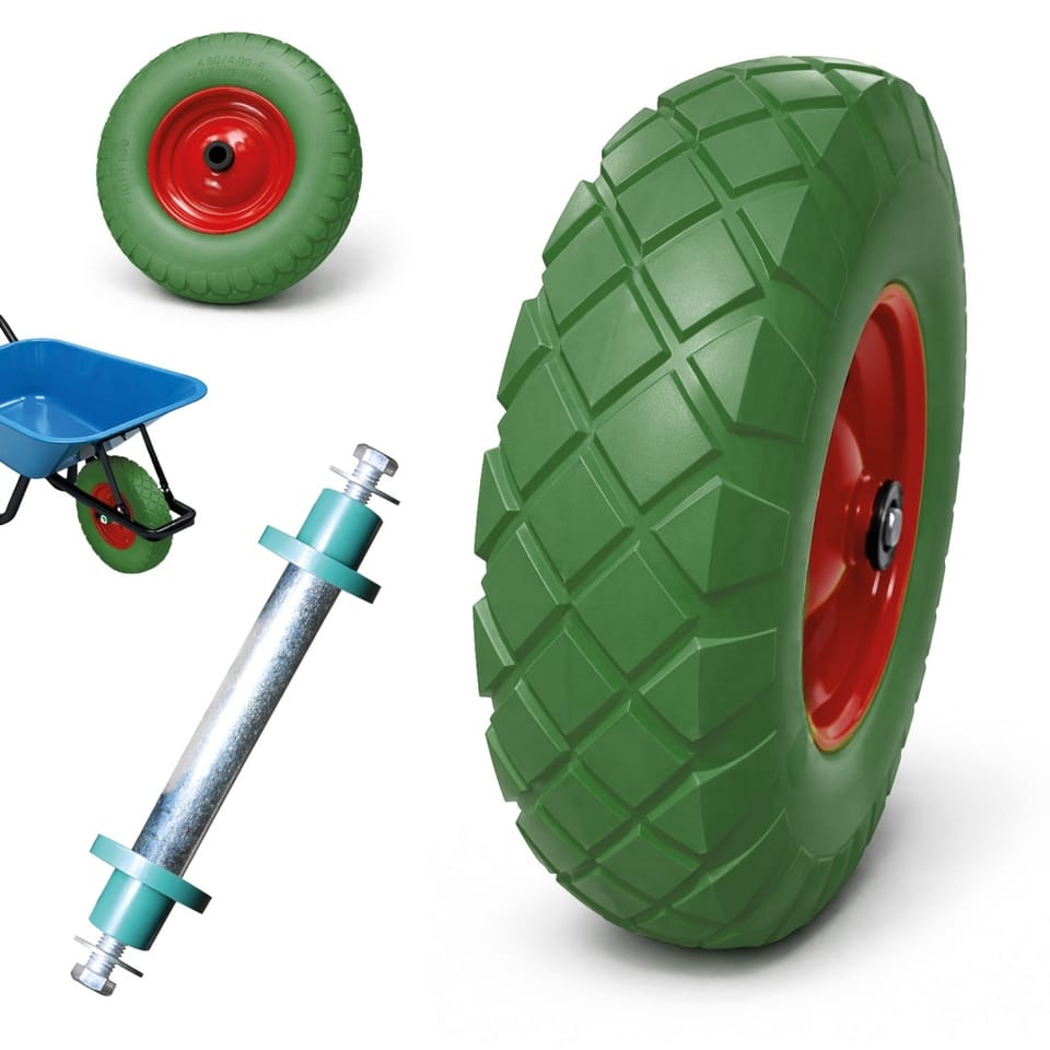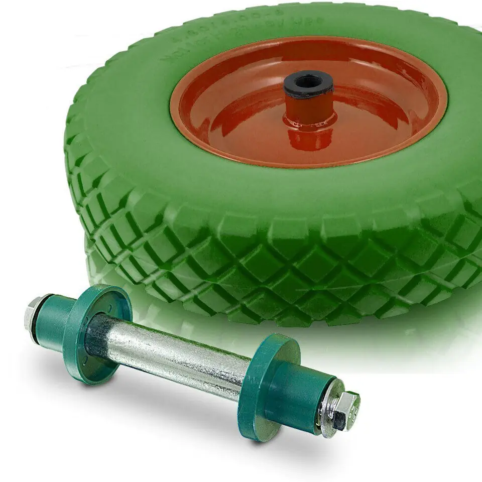 PEŁNE KOŁO DO TACZKI BEZDĘTKOWE Z OŚKĄ ZIELONE