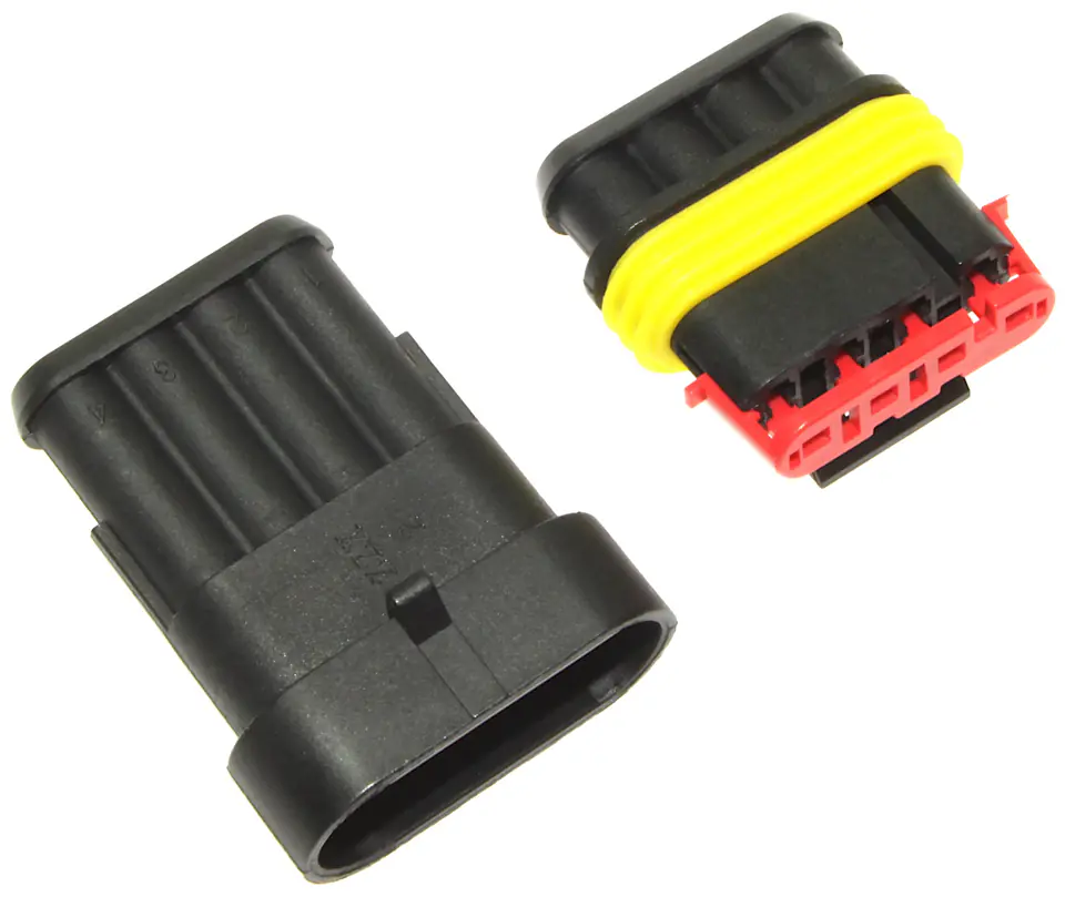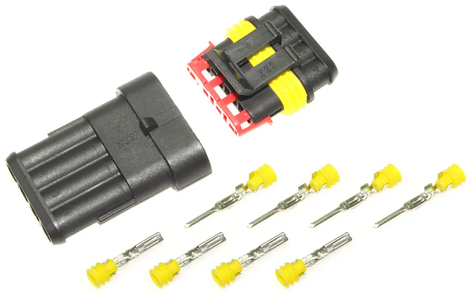 Uniwersalne złącze stosowane w motoryzacji w bardzo szerokim zakresie. W zestawie kostka męska i żeńska, komplet konektorów i uszczelnień.