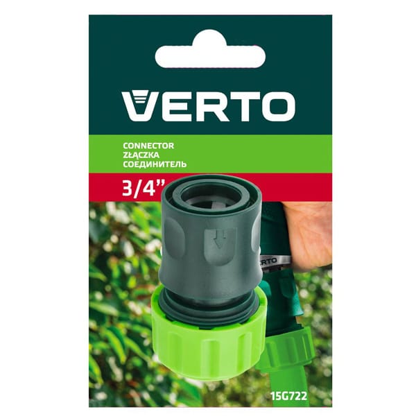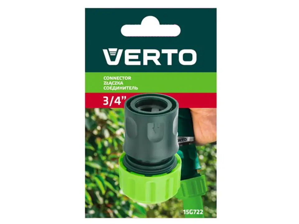 Złączka przelotowa Verto 15G722 do węży ogrodowych 3/4". Wykonana z wysokiej jakości tworzyw sztucznych, co zapewnia wieloletnią bezawaryjną pracę tego elementu.