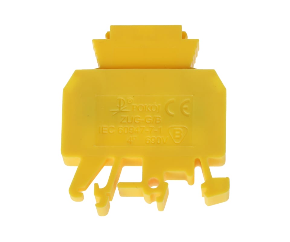 Złączka szynowa ZUG-G/B to element instalacyjny z wbudowaną wkładką bezpiecznikową, przeznaczony do montażu na szynie DIN. Wyróżnia się żółtym kolorem ułatwiającym identyfikację i zapewnia wygodną ochronę obwodów przed przeciążeniem. Idealna do rozdzielnic i szaf sterowniczych w instalacjach przemysłowych i budynkowych.