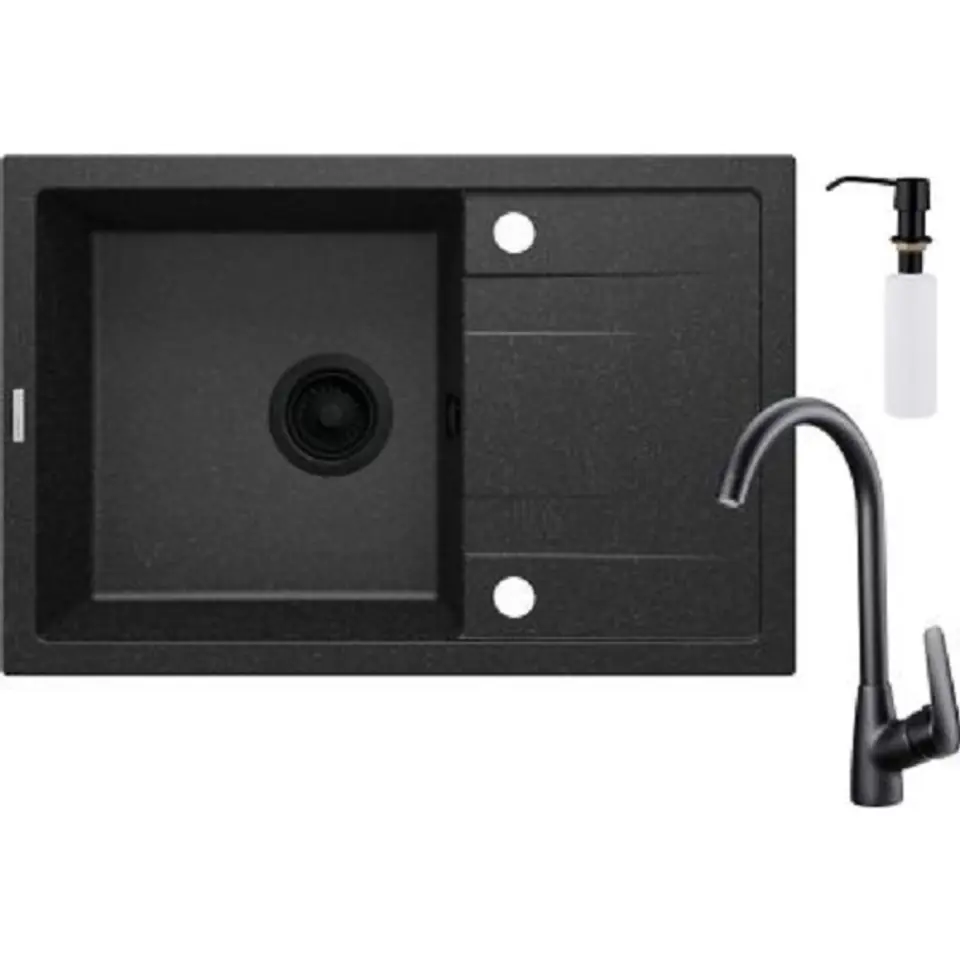 Zlewozmywak Deante granitowy z baterią 1-komorowy z ociekaczem - z dozownikiem