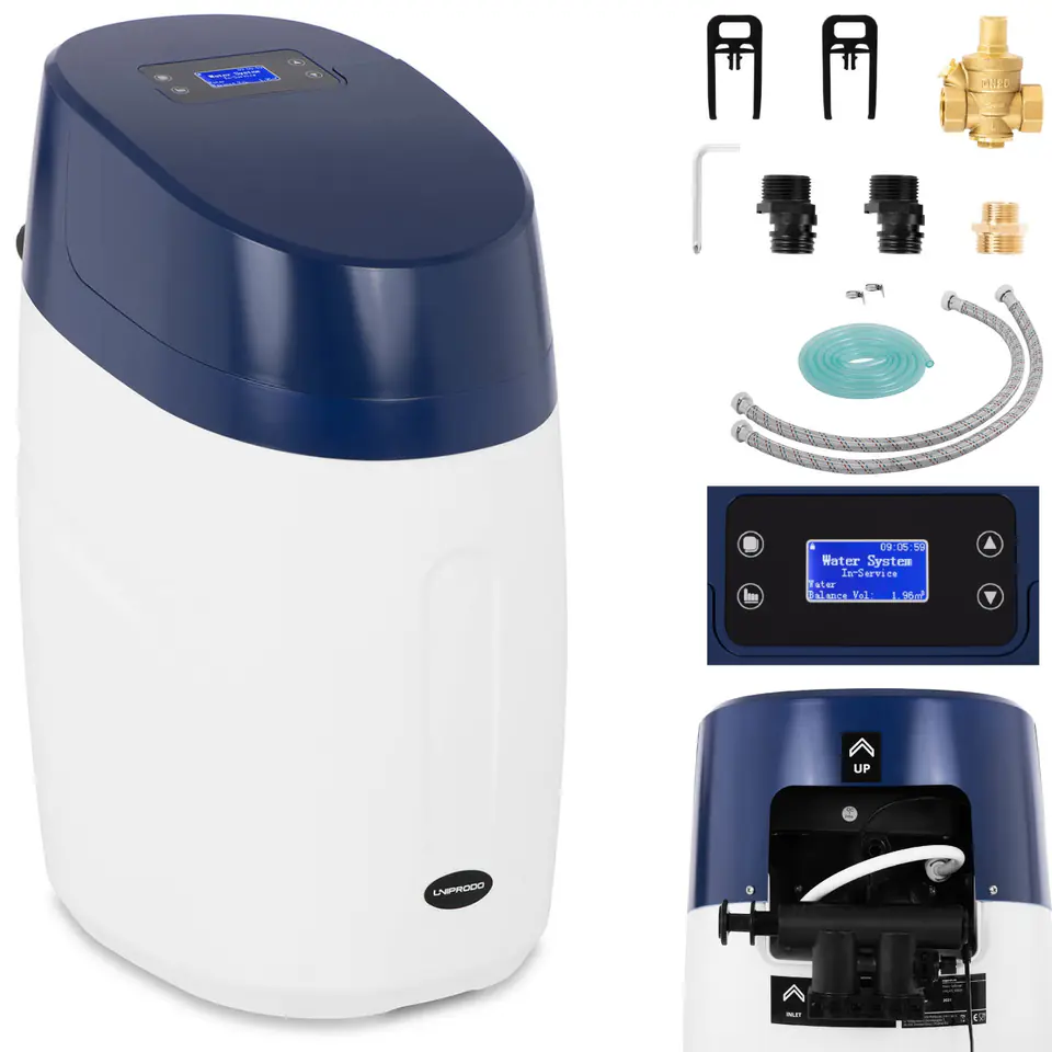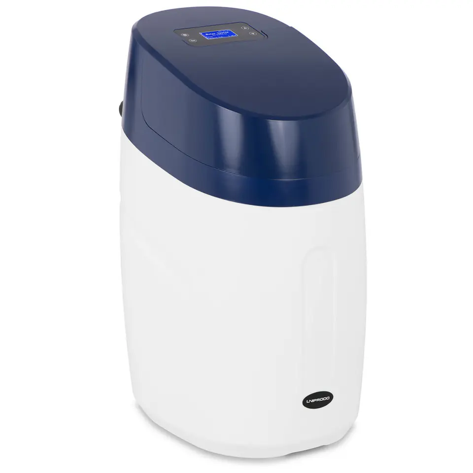 Zmiękczacz wody marki Uniprodo sprawdzi się m.in. w restauracjach, barach, hotelach. Nadaje się również do użytku domowego. Kompaktowa konstrukcja nadaje się do zainstalowania pod zlewem. Pracę zmiękczacza wody można kontrolować dzięki czytelnemu wyświetlaczowi LED. 24-godzinna kontrola i monitoring z timerem pozwalają automatycznie regenerować środkową warstwę żywicy w ustawionym przez system czasie (zgodnie z częstotliwością lub twardością wody). Możesz precyzyjnie ustalić plan cyklu zmiękczania dopasowany do jakości wody i jej rzeczywistego zużycia. Automatyczny zawór ze wbudowanym procesorem i elektronicznym wodomierzem monitoruje przepływ wody, dostosowując odpowiednio proces regeneracji (46 min). Zarówno zmiękczanie, jak i regeneracja odbywają się automatycznie. Należy uzupełniać sól do regeneracji żywicy. Woda nienadająca się do użytku jest wprowadzana do kanalizacji odpowiednim przyłączem.